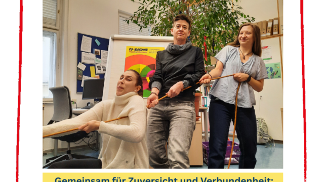 2. Zieht gerne wirklich an einem Strang/ Seil/ Tuch oder haltet das WSWD Plakat um aufzuzeigen, wie wichtig ein Berufsgesetz für Soziale Arbeit ist.