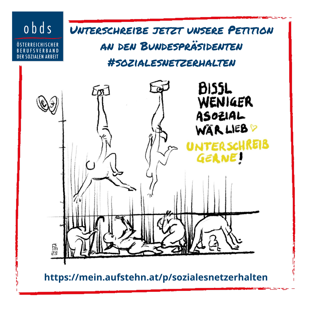 Alle Beiträge 28. November 2025 Unterschreibe jetzt unsere Petition! 26. November 2025 obds bei ESN 26. November 2025 Kürzungen zurücknehmen! – offener Brief des obds 25. November 2025 16 Tage gegen Gewalt: Bewusstsein schaffen – Menschenrechte stärken 11. November 2025 obds Impulse online – Kinder- und Jugendhilfe im Fokus 11. November 2025 Geplante Leistungskürzungen 2026 – Reaktionen und Medien 2. November 2025 obds Events im November! 🍂 15. Oktober 2025 IFSW Europe 15. Oktober 2025 21.10.2025 | KI in der Arbeitswelt 10. Oktober 2025 Abschied mit Zuversicht – DANKE, Gerlinde! 2. Oktober 2025 obds Standpunkt zur aktuellen Situation in der KuJ-Hilfe 1. Oktober 2025 obds Events im Oktober! 🎉 1. Oktober 2025 Community Viewing Wien 2. September 2025 obds Events im September! 🎉* 26. Juni 2025 Der Qualifikationsrahmen für Soziale Arbeit in Österreich 1234 Weiter