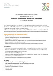 – gemeinsam verhelfen wir ihnen zu einer guten Zukunft. ProSoz ist als freie Einrichtung der Kinder- und Jugendhilfe in Wien zertifiziert und zeichnet sich durch Dialog- und Konfliktfähigkeit sowie Wertschätzung und ein professionelles Qualitätsmanagement aus.