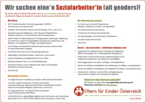 Der Verein „Eltern für Kinder Österreich“ sucht eine Karenzvertretung für das Team im „Fachbereich Pflege und Adoption“ ab Jänner 2026 bis voraussichtlich Herbst 2027.