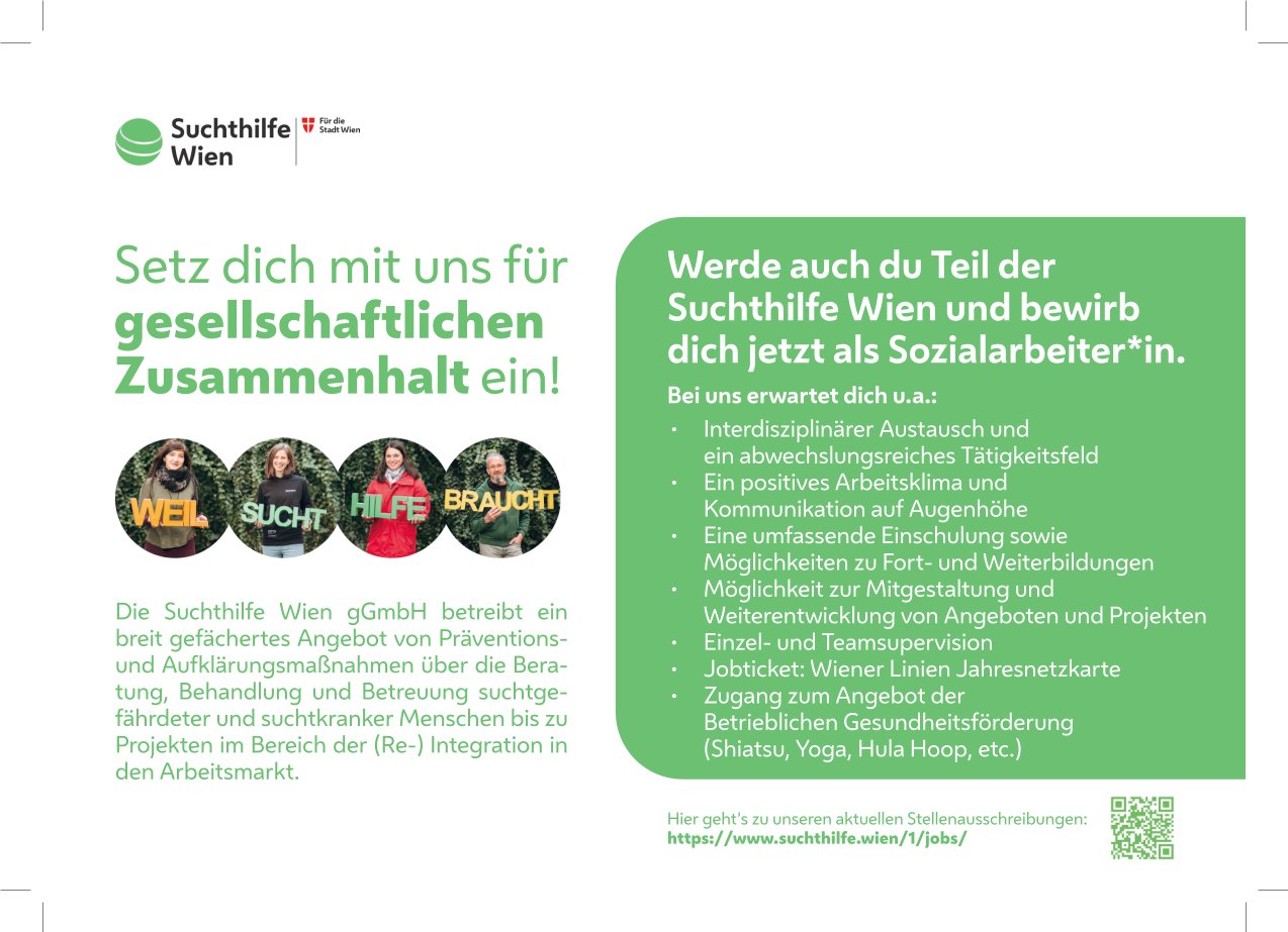 Eine Zielgenaue Leser*innenschaft wird erreicht, die sozial, ökologisch und wirtschaftlich nachhaltig denkt und handelt. Die SIÖ, als größte österreichische Fachzeitschrift der Sozialen Arbeit, wird in gedruckter und digitaler verbreitet.