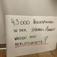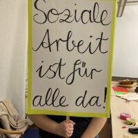 - Schnappt euch ein Seil oder Tuch oder haltet das WSWD Plakat gemeinsam um aufzuzeigen, wie wichtig das Ziehen an einem Strang für ein Berufsgesetz für Soziale Arbeit ist.