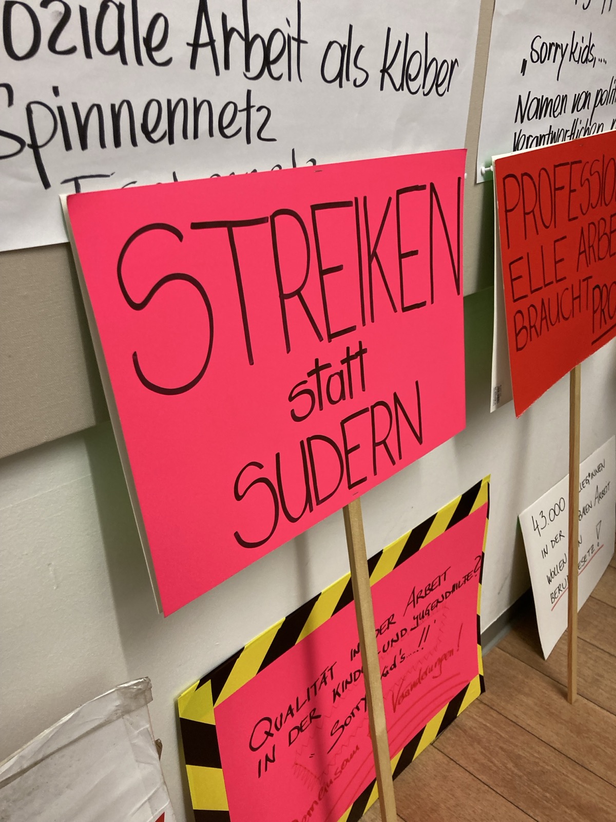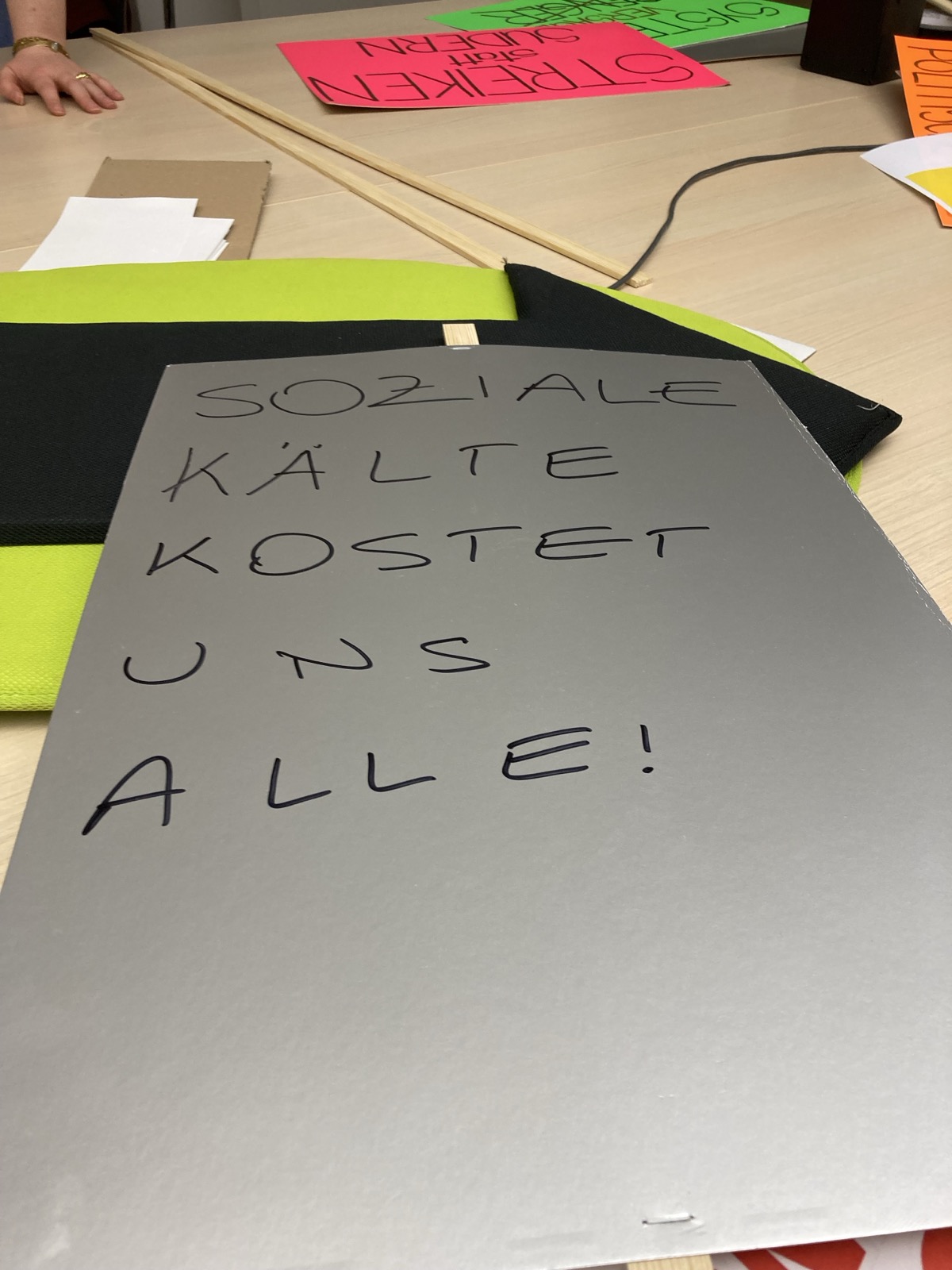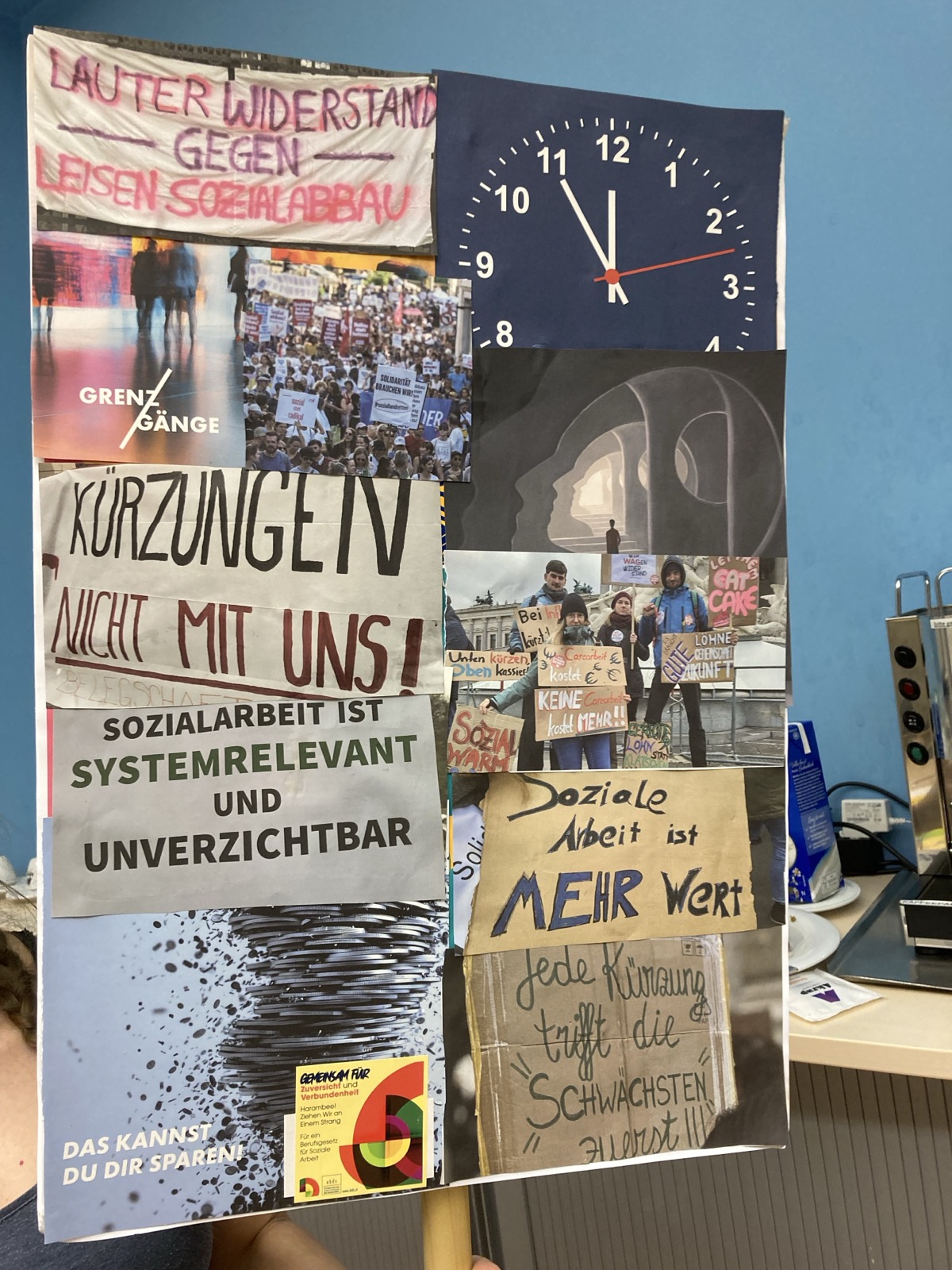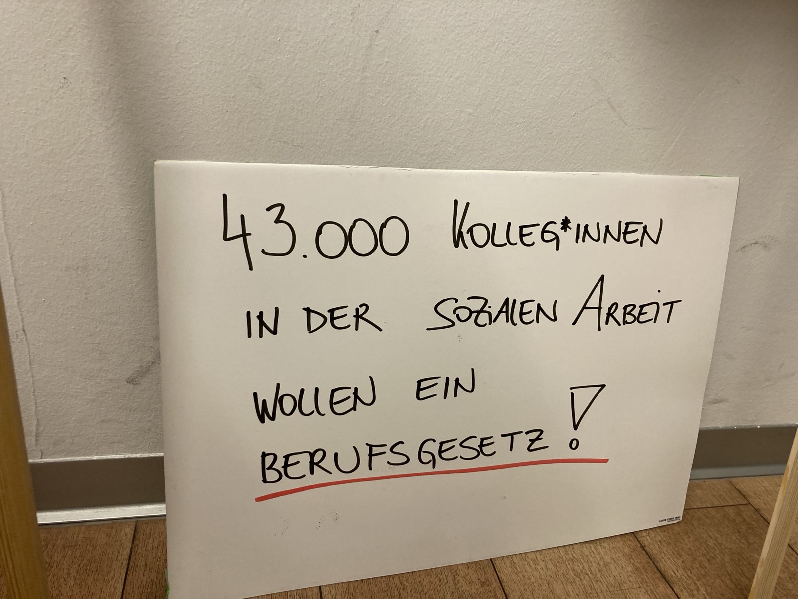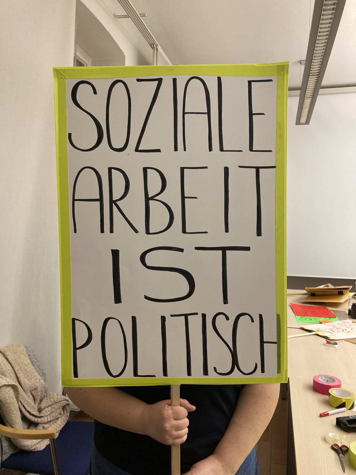 - Schnappt euch ein Seil oder Tuch oder haltet das WSWD Plakat gemeinsam um aufzuzeigen, wie wichtig das Ziehen an einem Strang für ein Berufsgesetz für Soziale Arbeit ist.