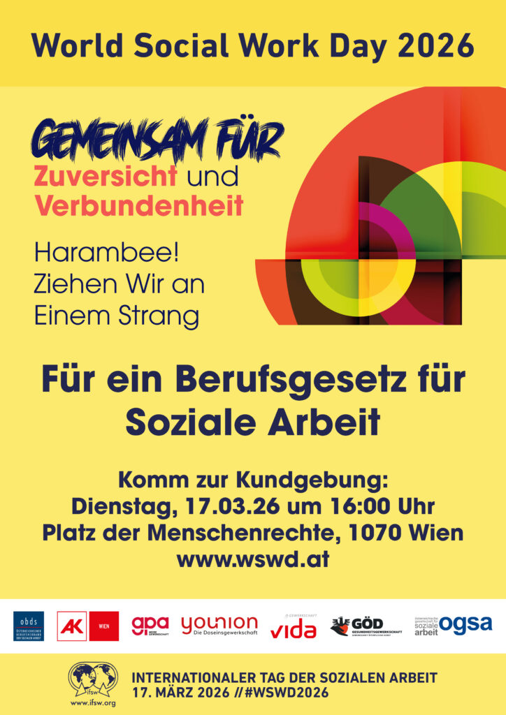 Im Rahmen des WSWD finden weltweit Veranstaltungen statt, deren Ziel es ist, Soziale Arbeit in ihrer Vielseitigkeit zu präsentieren und sichtbar zu machen. Der obds beteiligt sich als ifsw Mitglied ebenfalls an dieser Kampagne. Einen überblick zu Events in – und außerhalb – Österreichs findest du auf unserer Homepage: obds.at/wswd.
