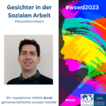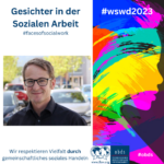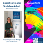 Nimm an unserer digitalen Kampagne im Rahmen des #wswd2023 teil. Rechts findest du eine Kurzanleitung als PDF zum Ausdrucken und Teilen. Die Verwendung des diesjährigen Plakats für den WSWD 2023 ist vielfältig – wie unsere Arbeitsbereiche und die Menschen in der Sozialen Arbeit: