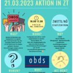 Im Rahmen des internationale Tag der Sozialen Arbeit am 21.03.2023 findet in Zwettl/NÖ ein „Bewusstseins-Spaziergang“/“Sozialarbeits-Marsch“ statt. Ziel ist es ein allgemeines Bewusstsein für die berufliche Tätigkeit im Sozialbereich zu schaffen, Aufmerksamkeit der Öffentlichkeit für die bestehenden sozialen Einrichtungen in Zwettl – und Umgebung – zu generieren (Werbung) und den Fachkräftemangel aufzeigen. Dazu können alle interessierten Träger/Vereine/Firmen/Privatpersonen/Studierende/Schüler*innen Plakate zur Verfügung stellen bzw. mitnehmen. Auch Plakate vom Berufsverband OBDS oder der Gesellschaft für Soziale Arbeit OGSA können bei der Veranstaltung zur Unterstützung mitgenommen werden (Downloadmöglichkeit ab Ende Februar).